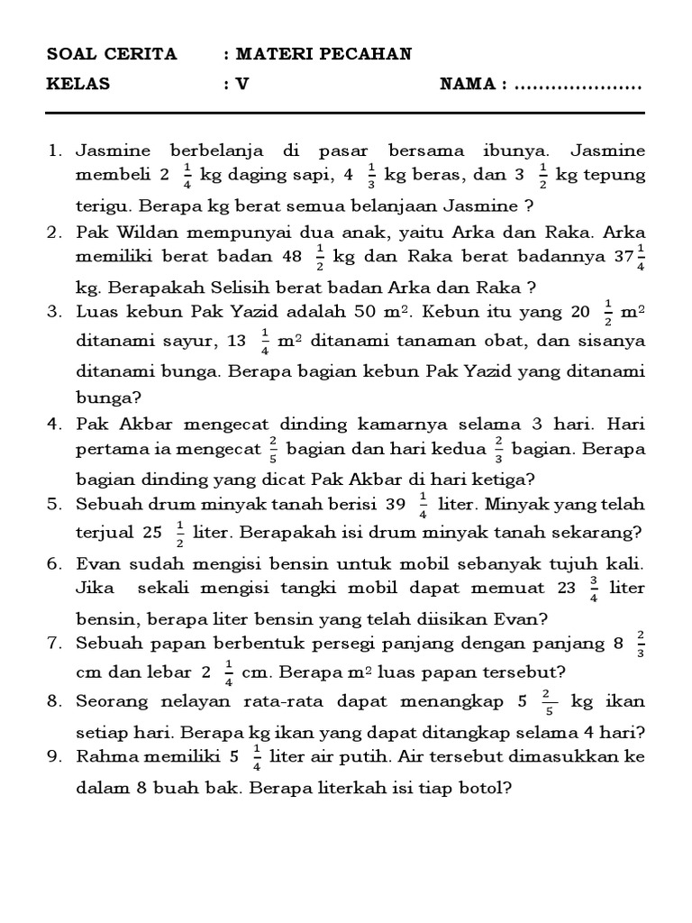 Soal Cerita Pecahan Kelas 4 - Soal Pecahan Sederhana Cara Golden, Data tinggi badan tim voli sd maju yaitu:. Nah, biar makin siap dan percaya diri, yuk kita latihan soal usbn matematika kelas 6 bareng. Karena sedang sakit, catur digantikan oleh fardan dengan tinggi badan 150 cm. Berikut bospedia memberikan soal latihan matematika kelas 7 smp/mts bilangan bulat petunjuk umum 1. Jun 28, 2021 · materi agama islam kelas 5 sd: Jul 23, 2021 · contoh soal pertidaksamaan liniear contoh soal 1: